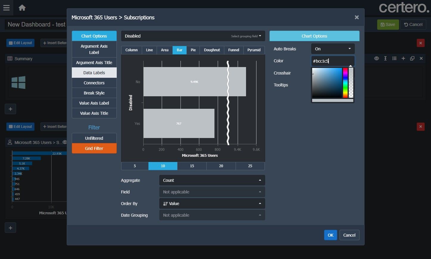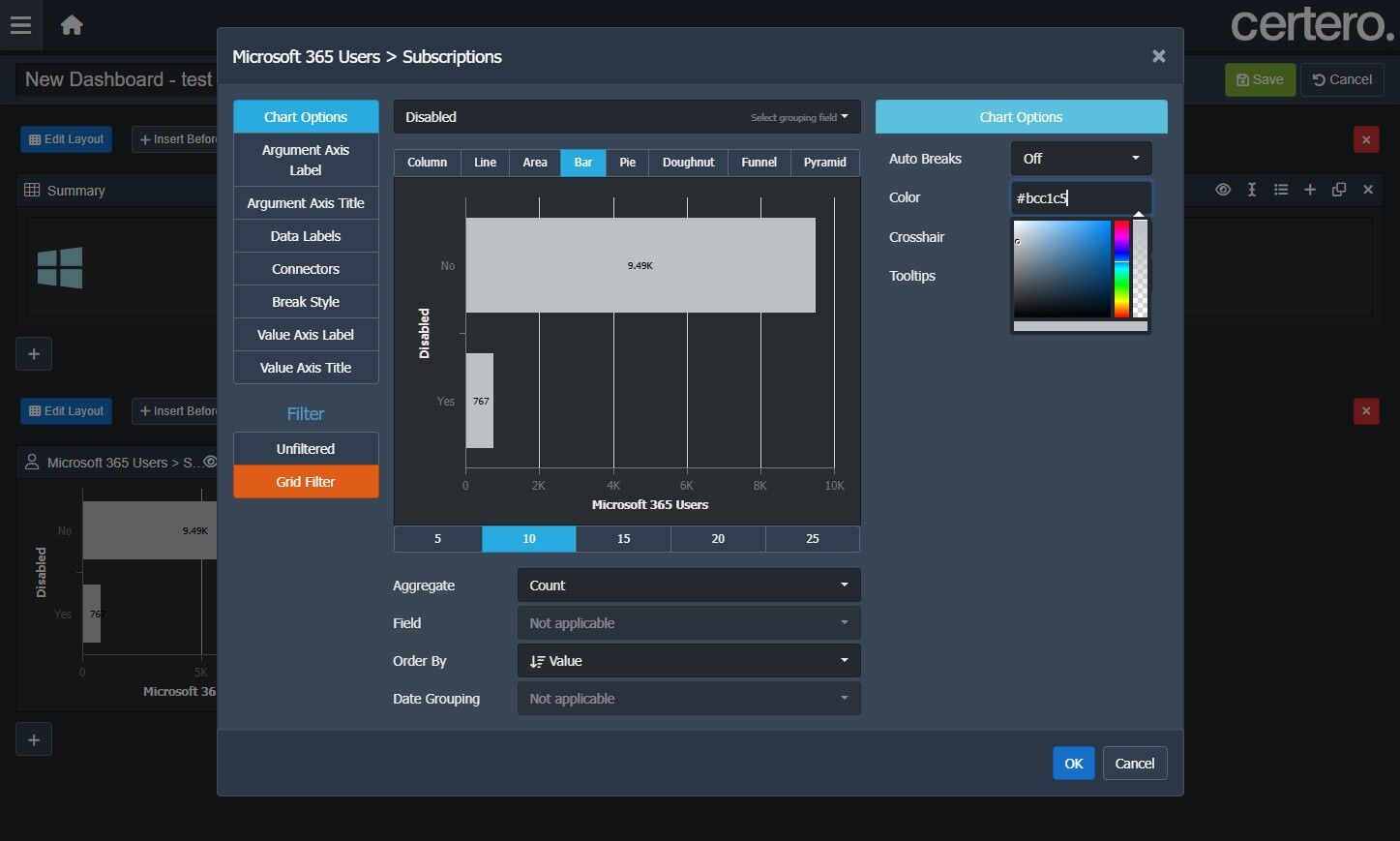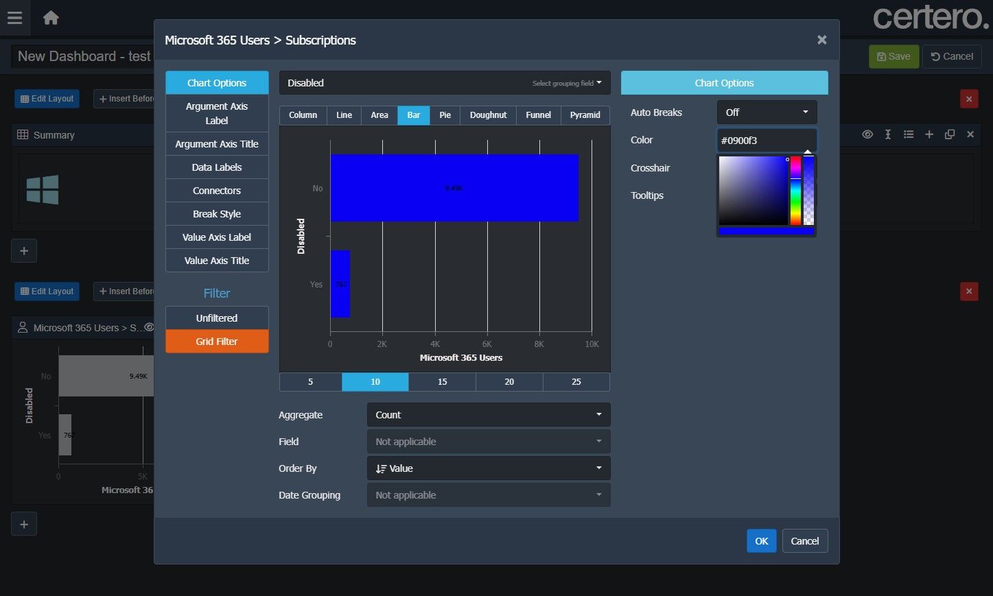 78. Click "Chart Options Auto Breaks Off On Off Color Crosshair Off On On Tooltips Off On Off"