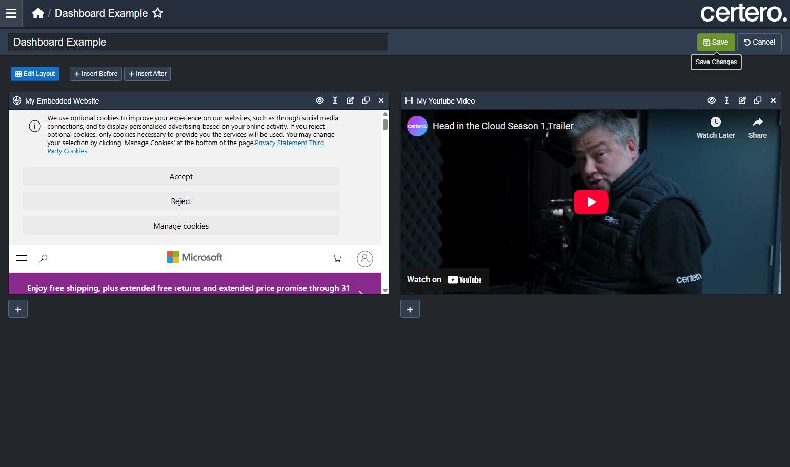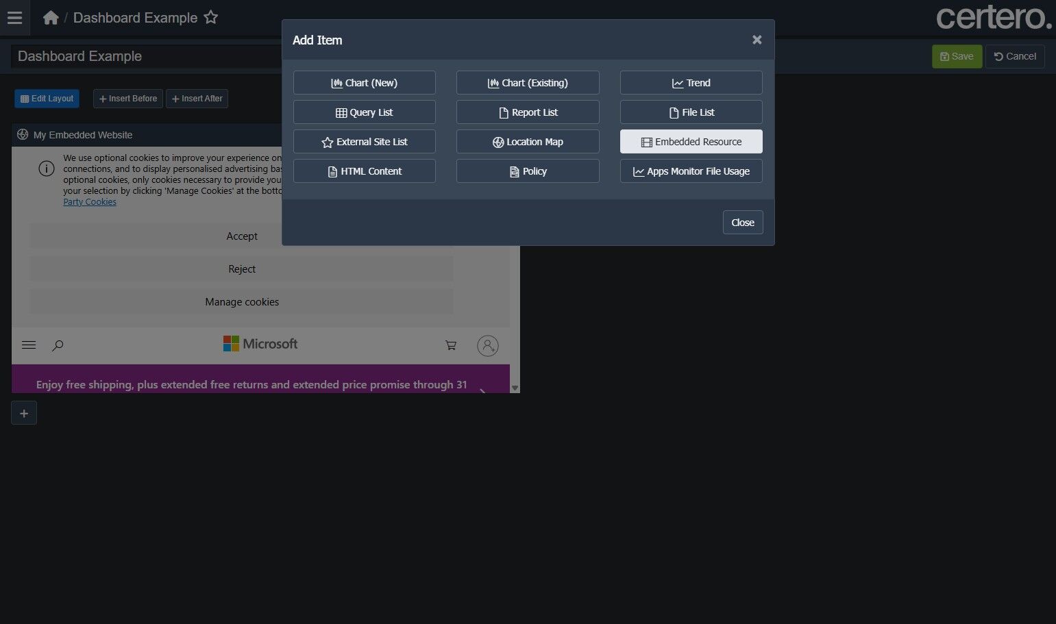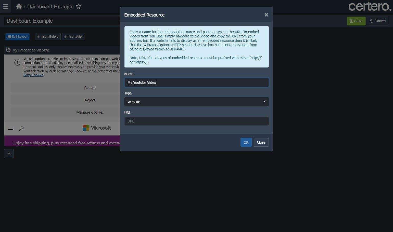 Embedded Resources within Certero are a very handy tool for the users as they allow for important internal and external websites, as well as videos to be published within the dashboard.