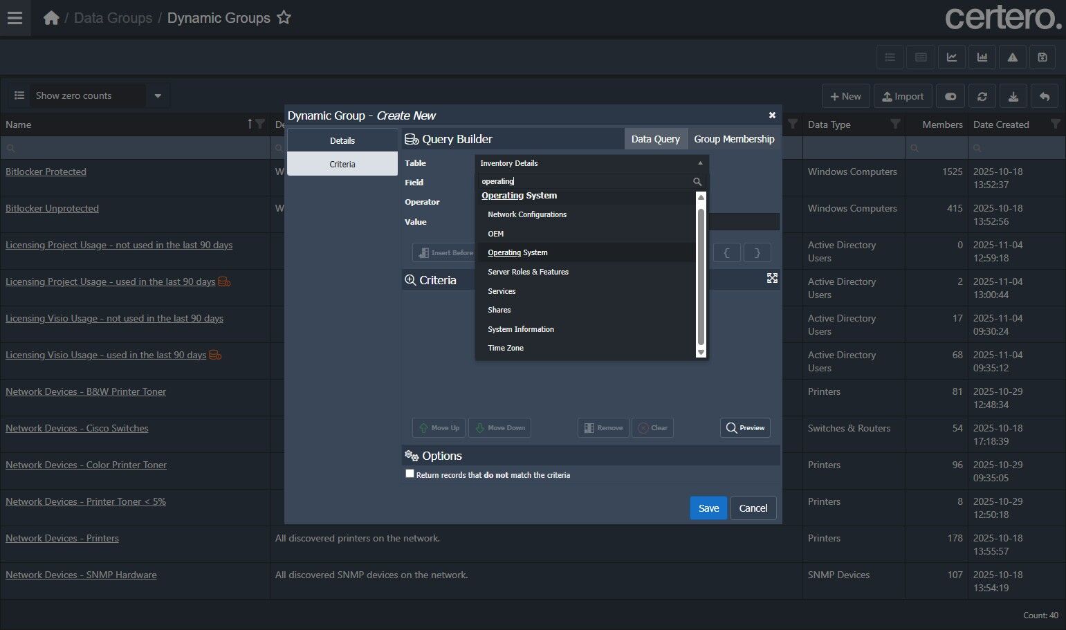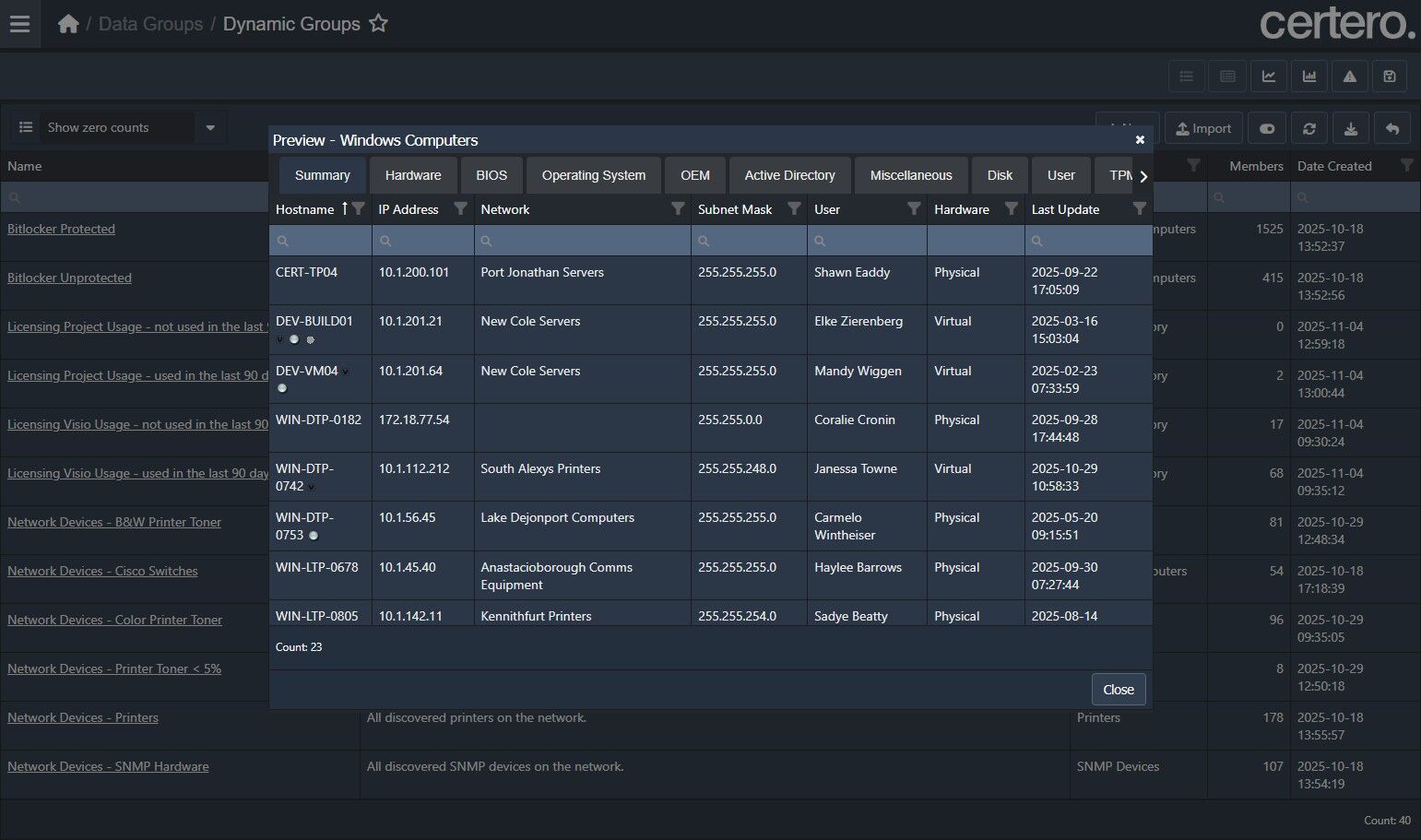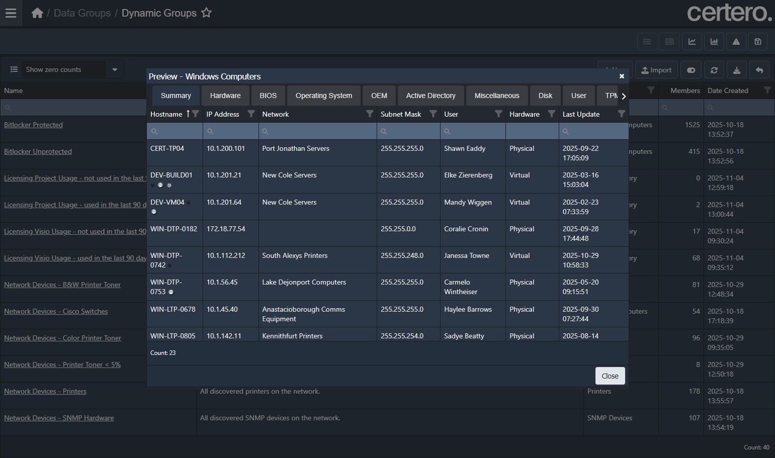 Unlock the power of your Certero inventory data with dynamic groups, a flexible tool that updates daily to spotlight key insights across your organization, saving you time on manual analysis.