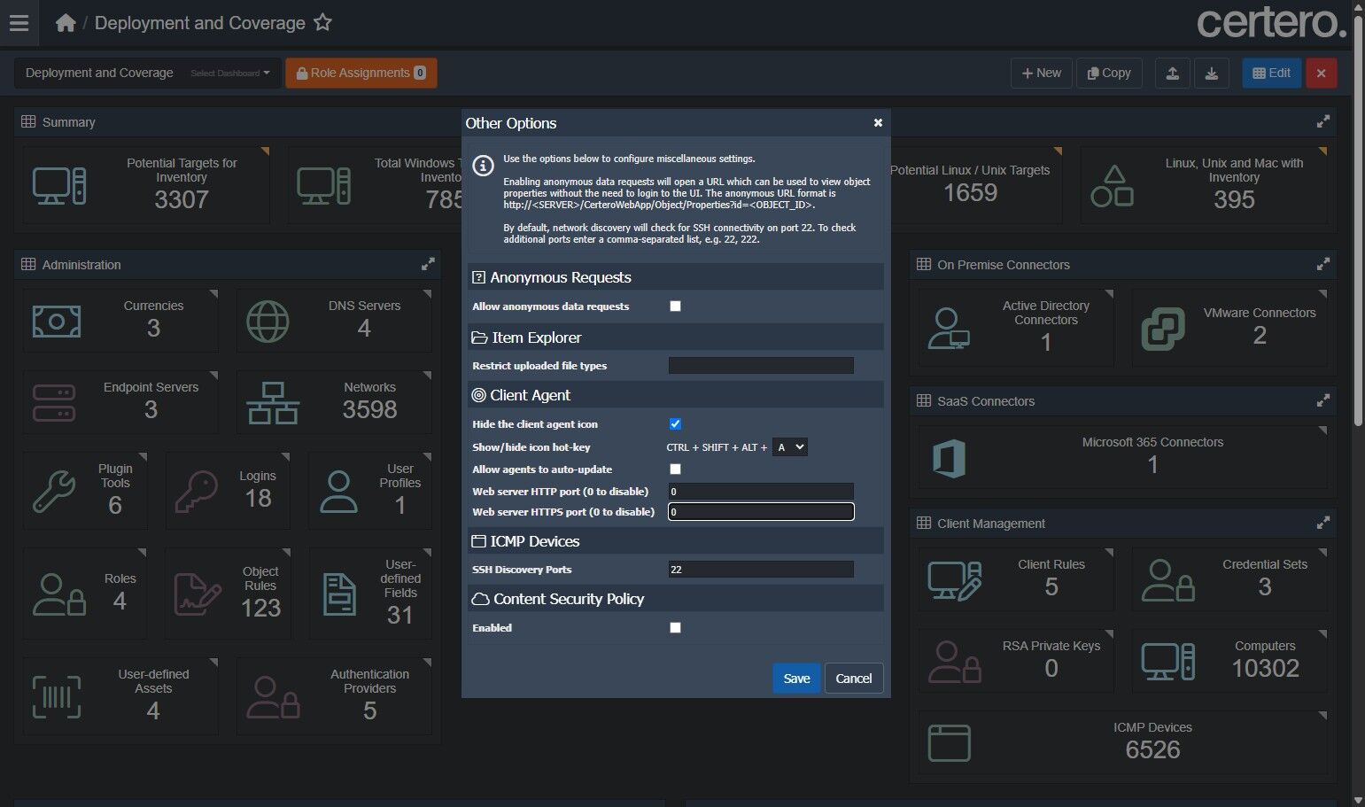 Within the Certero Management Platform is the ability to define a Web Server port for the Certero clients that are deployed across your estate. This is used for several different tasks across the platform.